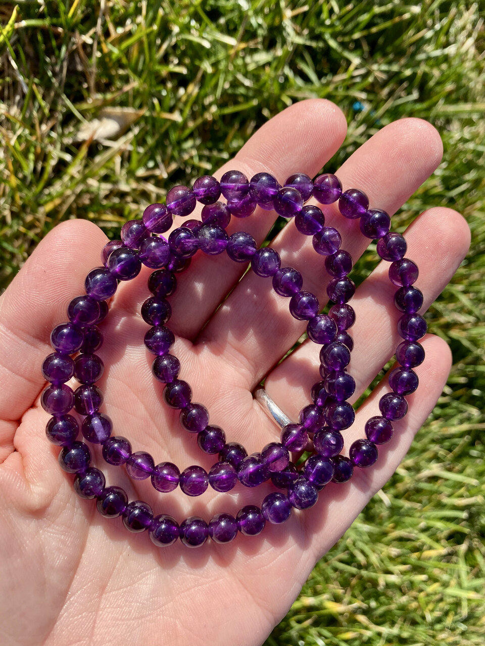 Natural amethyst crystal bracelet for calmness, clarity, and spiritual protection.