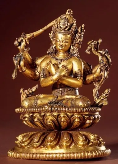 Handcrafted brass statue of Manjushree, symbolising wisdom, knowledge, and clarity of mind.