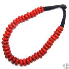 Elegant coral bead necklace with cultural significance.